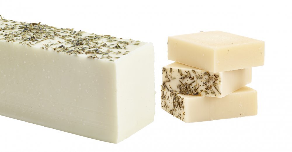 Lavender soap with a fine sprinkling of lavender flowers on top. A calming and anti-bacterial effect.