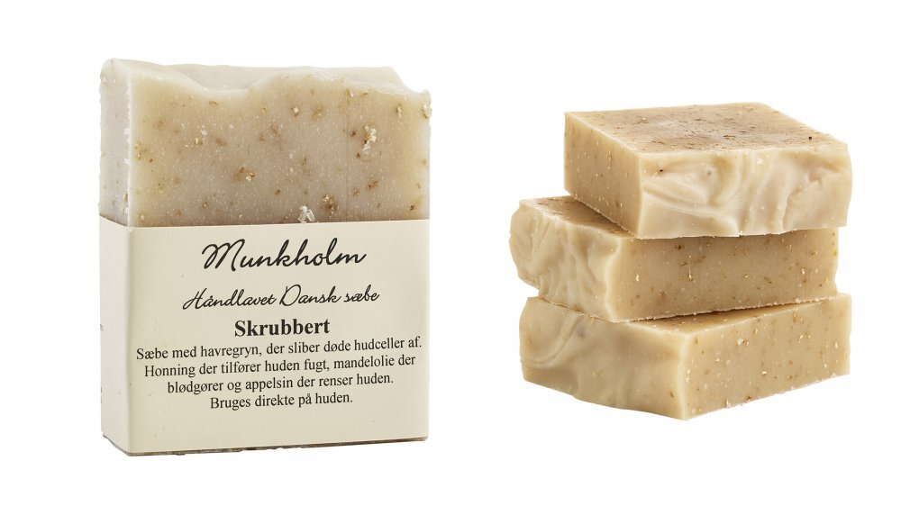 A soap with oats that exfoliates and honey that moisturizes, almond oil